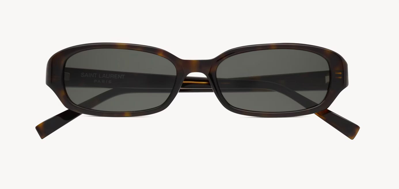 A timeless shape with just enough presence. These feel like a strong long-term accessory—though I’ll need to see them on. You’ll recall I’ve worn my Khaite x Oliver Peoples 1998C (from 10 Items I’d Buy 10 Times Over Vol. 1) into the ground and fully plan to keep doing so, but I like the idea of an alternative that isn’t a metal frame. I have the Prada 49MM, and this feels like a smart refresh.