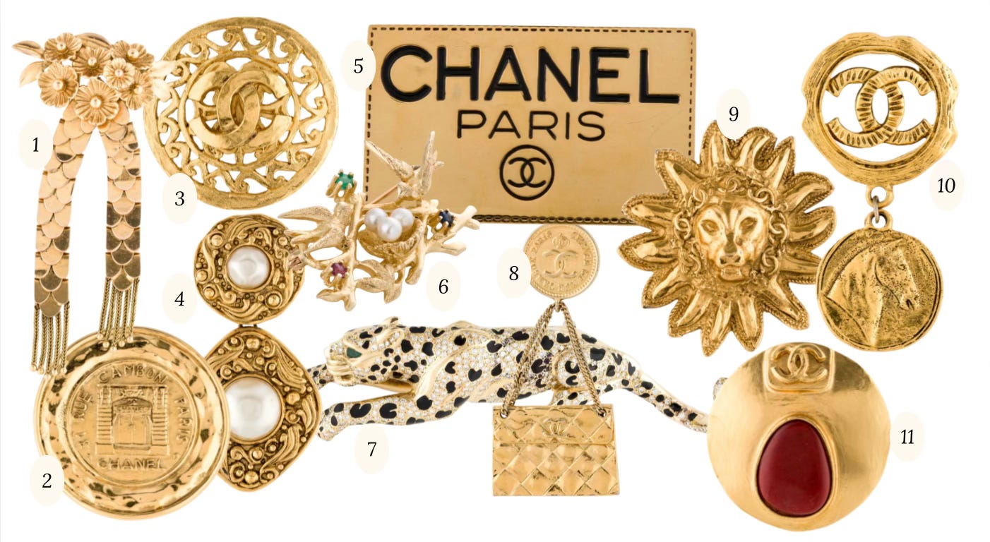 Perhaps of the Chanel variety? But I’m open. A small but meaningful luxury I picture adorning a coat, blazer, or knit. I’ve been eyeing only vintage options—collected, timeless charm.